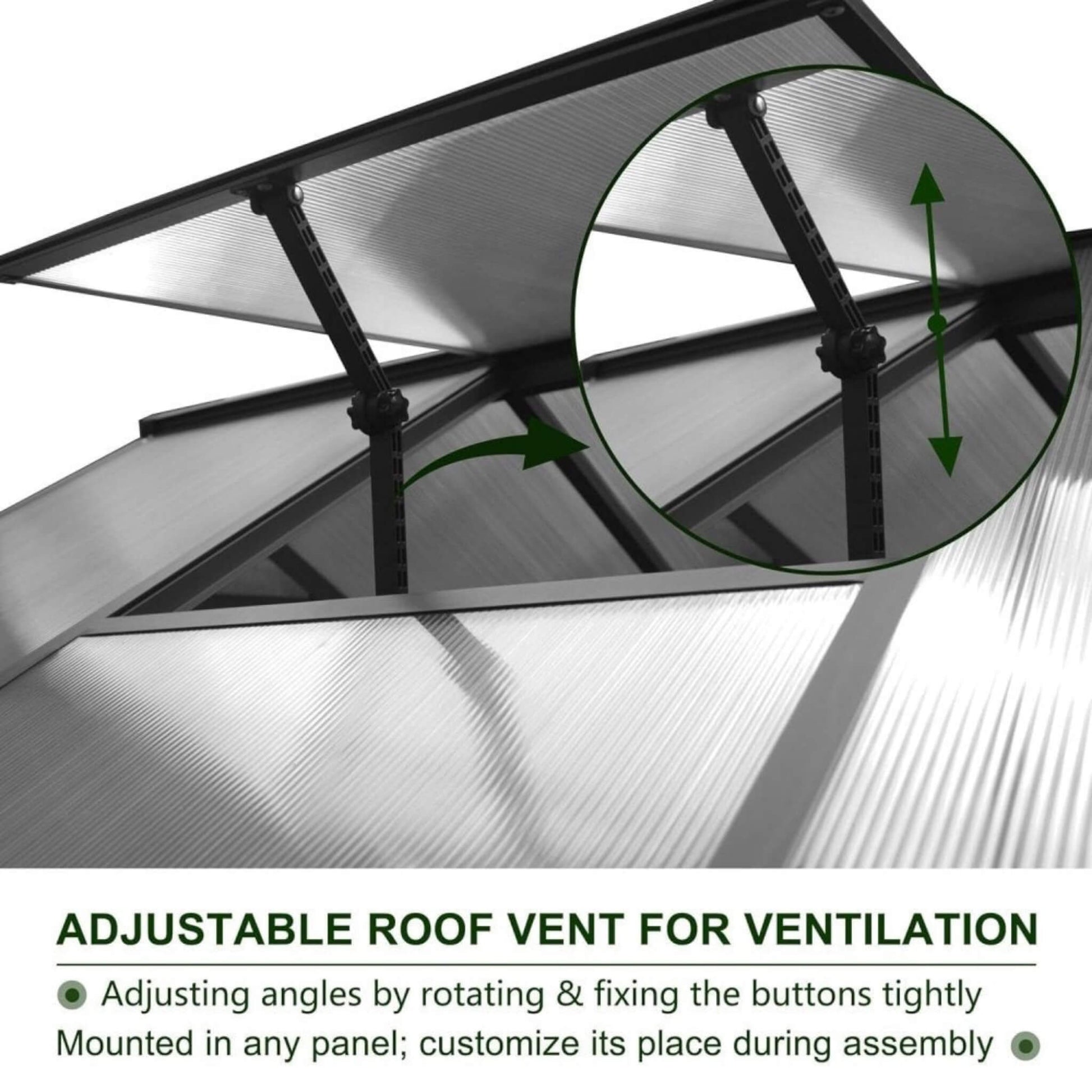 - The walk-in design features low-threshold, wide, and high double doors that make entering and exiting the greenhouse a breeze—even with your hands full of gardening tools. The manual vent window allows you to easily control humidity and ventilation levels, creating an optimal environment for your plants to thrive.