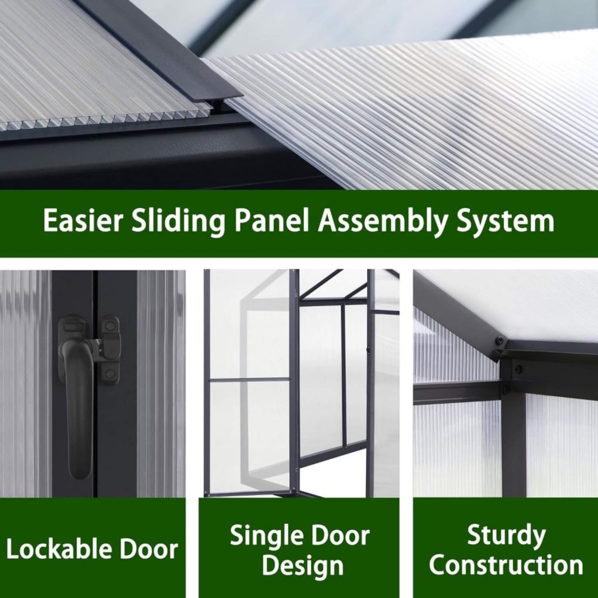 BUY THIS PREMIUM POLYCARBONATE GRAY WALK-IN GREENHOUSE KIT WITH ADJUSTABLE VENT