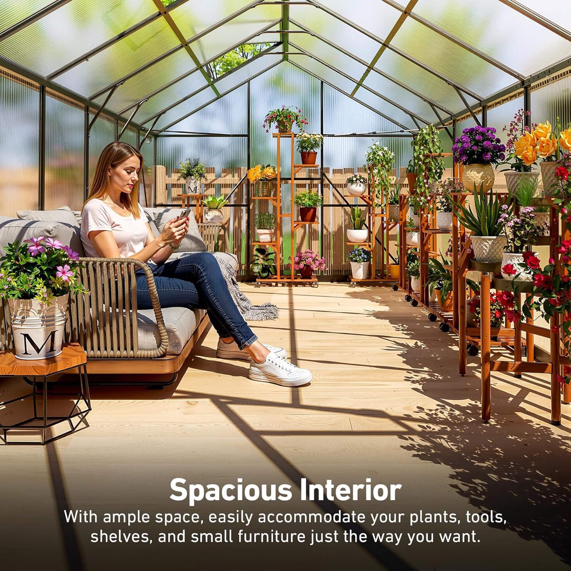 - Its spacious interior provides ample room for organizing plants and arranging gardening tools, ensuring a well-ventilated, clutter-free growing area for your plants to thrive.